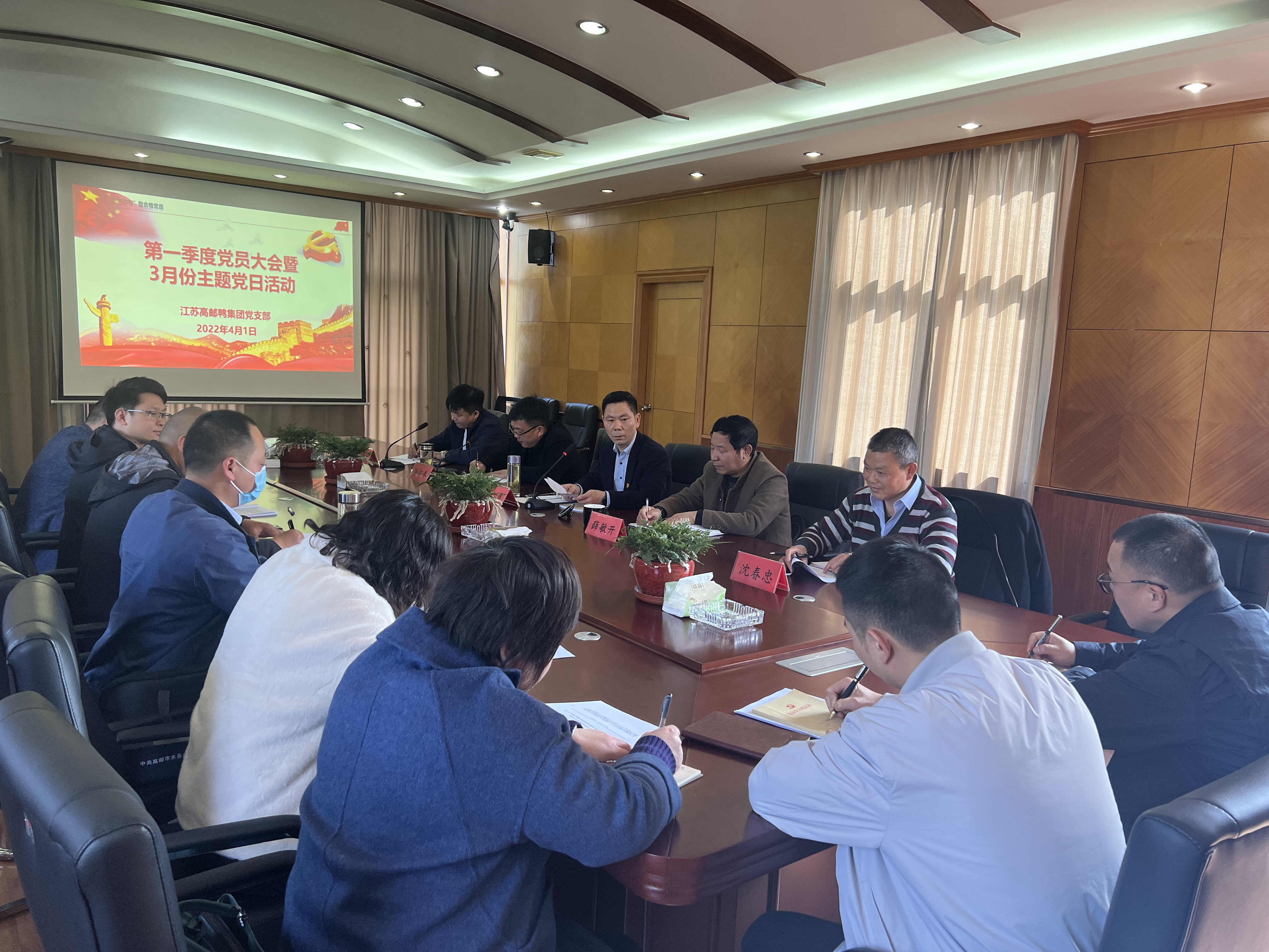 3月31日下午,高郵鴨集團黨支部開展第一季度黨員大會暨三月份統一活動日活動,全體黨員、入黨積極分子參加會議。