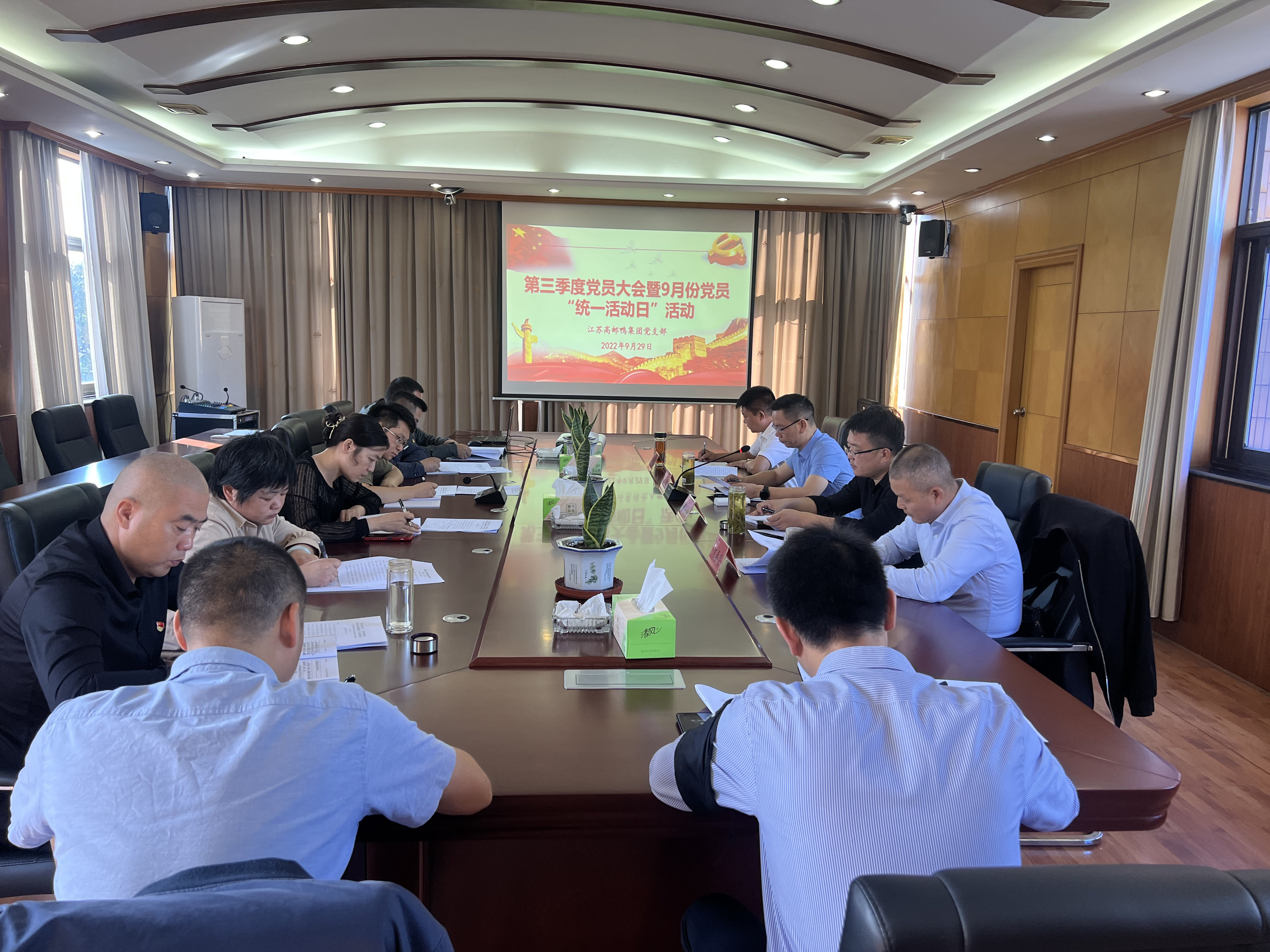 9月29日上午,高郵鴨集團(tuán)黨支部召開(kāi)第三季度黨員大會(huì)暨9月份統(tǒng)一活動(dòng)日活動(dòng),支部全體黨員、入黨積極分子參加會(huì)議,會(huì)議由黨支部書(shū)記、總經(jīng)理梁勇主持。