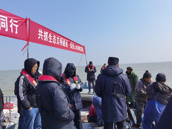 2月23日上午,高郵鴨集團副總經理沈春忠帶隊赴高郵湖青蝦國家級水產種質資源保護區水域開展增殖放流活動,約15萬尾草魚魚種歡快地游入湖泊。