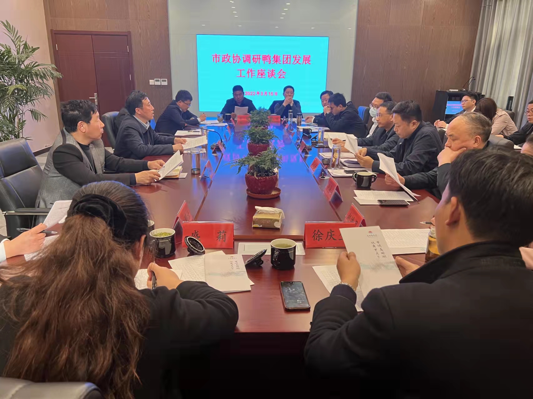 3月15日下午,市政協副主席張擁軍帶隊赴高郵鴨集團調研指導工作,市水投集團副總經理、鴨集團董事長劉廣游,市水投集團副總經理黨定龍陪同調研。