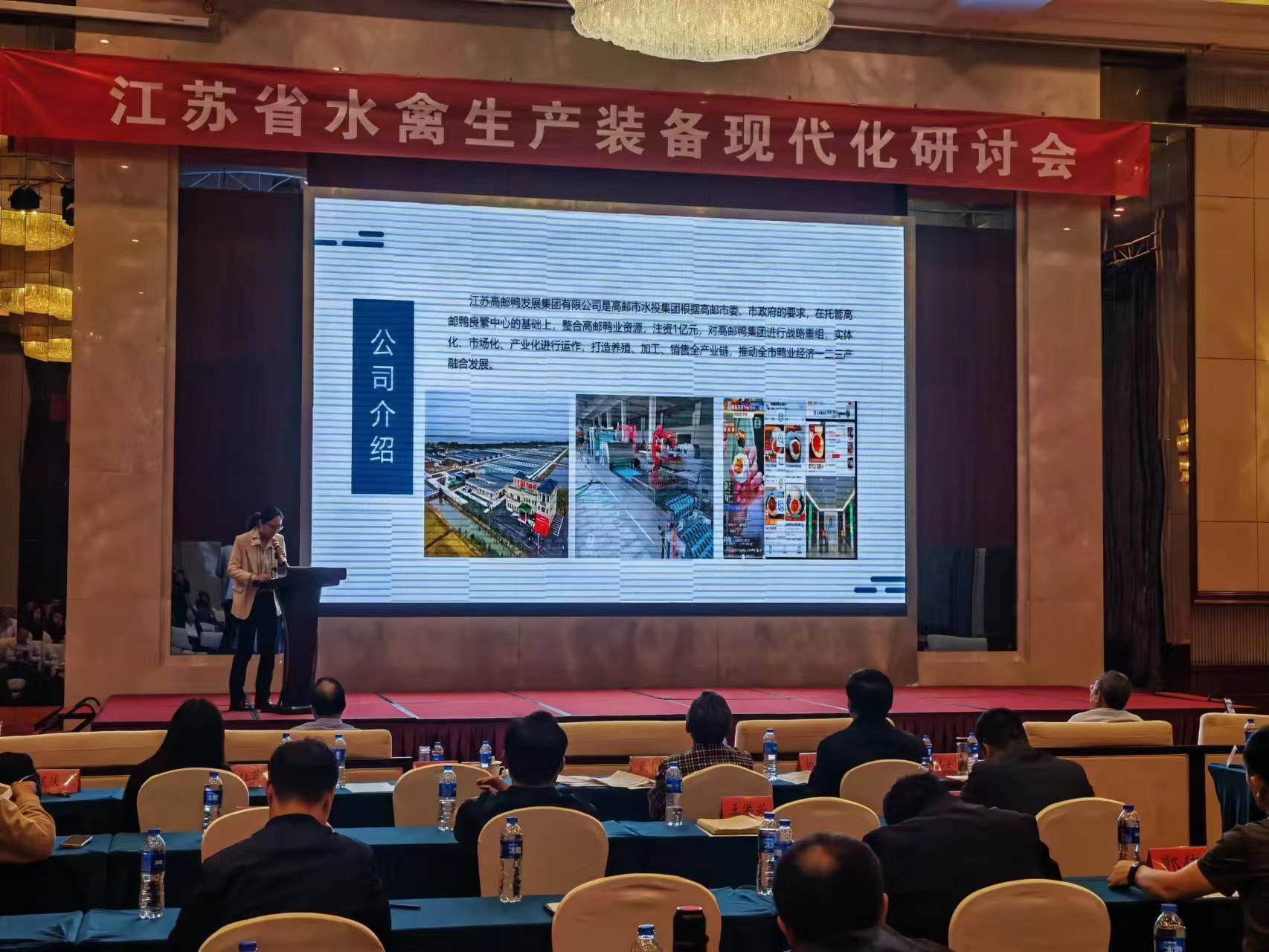 為提升江蘇水禽生產(chǎn)裝備現(xiàn)代化水平,促進(jìn)產(chǎn)業(yè)健康穩(wěn)定發(fā)展。5月11日,江蘇省水禽生產(chǎn)裝備現(xiàn)代化研討會在南京召開,江蘇高郵鴨集團(tuán)受邀參加活動。此次大會由江蘇省現(xiàn)代化(水禽)產(chǎn)業(yè)體系崗位專家戴有禮主持,來自全國各地的行業(yè)專家、政府主管部門領(lǐng)導(dǎo)、行業(yè)協(xié)會及重點企業(yè)代表參加研討會。