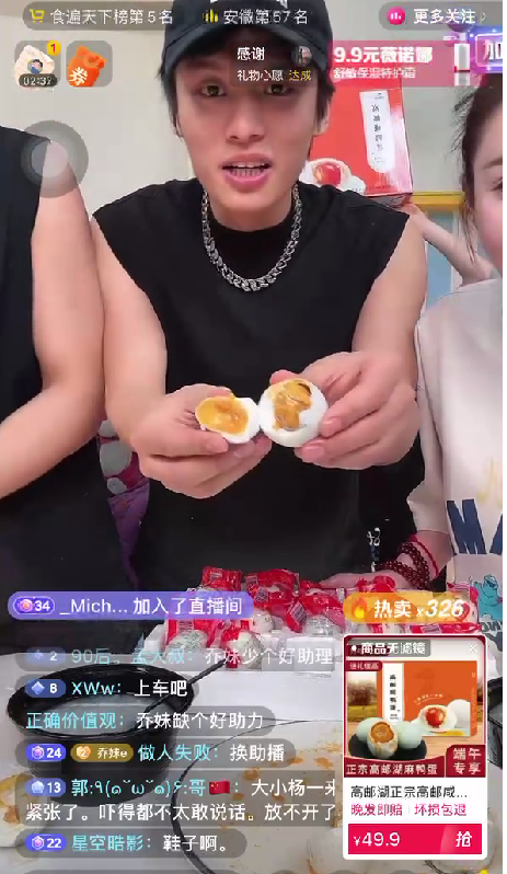 直播過程中,三只羊團隊將高郵咸鴨蛋的特色和制作工藝進行了全面展示,流量主播大楊哥和小楊哥通過親自品嘗和介紹,將咸鴨蛋的美味傳達給了屏幕前的觀眾,并憑借詼諧幽默的直播風格和強大的粉絲基礎,分享他們對于高郵咸鴨蛋的看法和感受,讓大家更加深入地了解了高郵咸鴨蛋的魅力,進一步激發了購買欲望。
