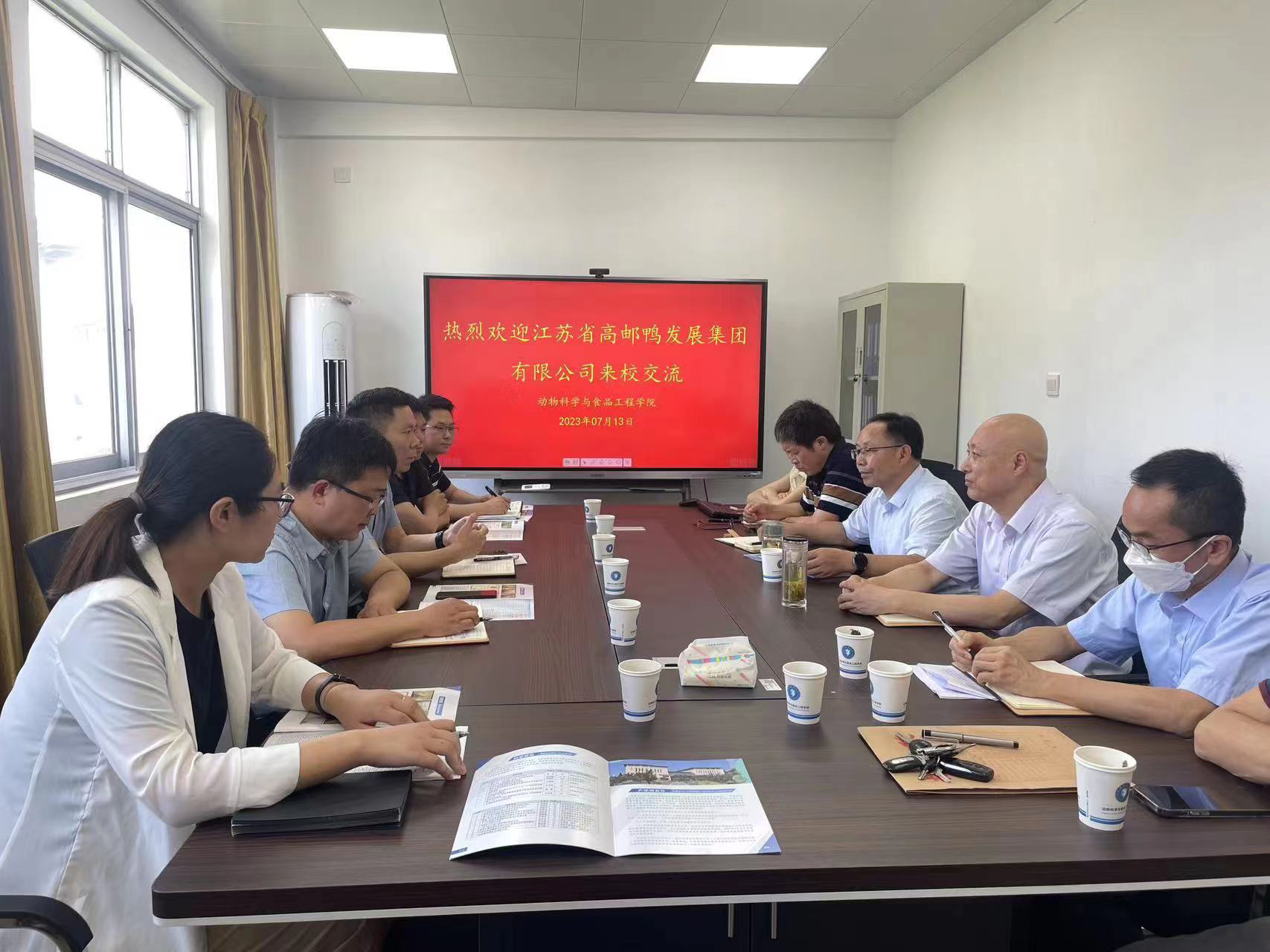 動(dòng)物科學(xué)與食品工程學(xué)院王正昱書記對(duì)高郵鴨集團(tuán)梁勇總經(jīng)理一行的到來表示熱烈歡迎,并共同觀看了南京金陵科技學(xué)院宣傳片。雙方圍繞飼料配方改良、新品系培育、疾病防控等方面問題進(jìn)行了深入交流與探討,為加強(qiáng)產(chǎn)學(xué)研交流合作,雙方就實(shí)訓(xùn)基地與研究生工作站成立事宜達(dá)成初步意向。
