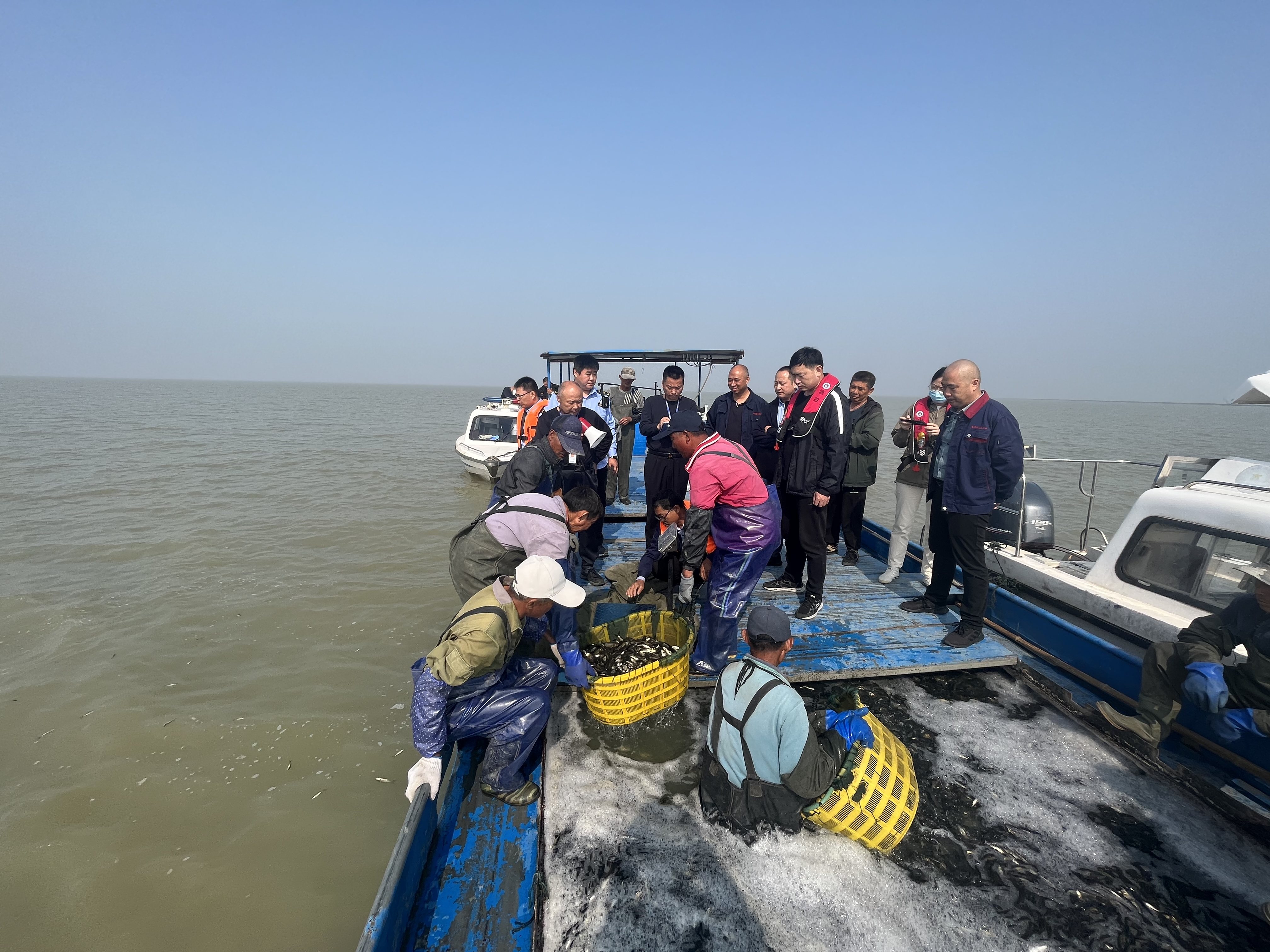 10月17日上午,高郵湖漁業公司組織參加高寶邵伯湖漁業資源增殖放流活動,本次活動漁業公司在大銀魚保護區投放鳙(6-10cm),共計15910斤。