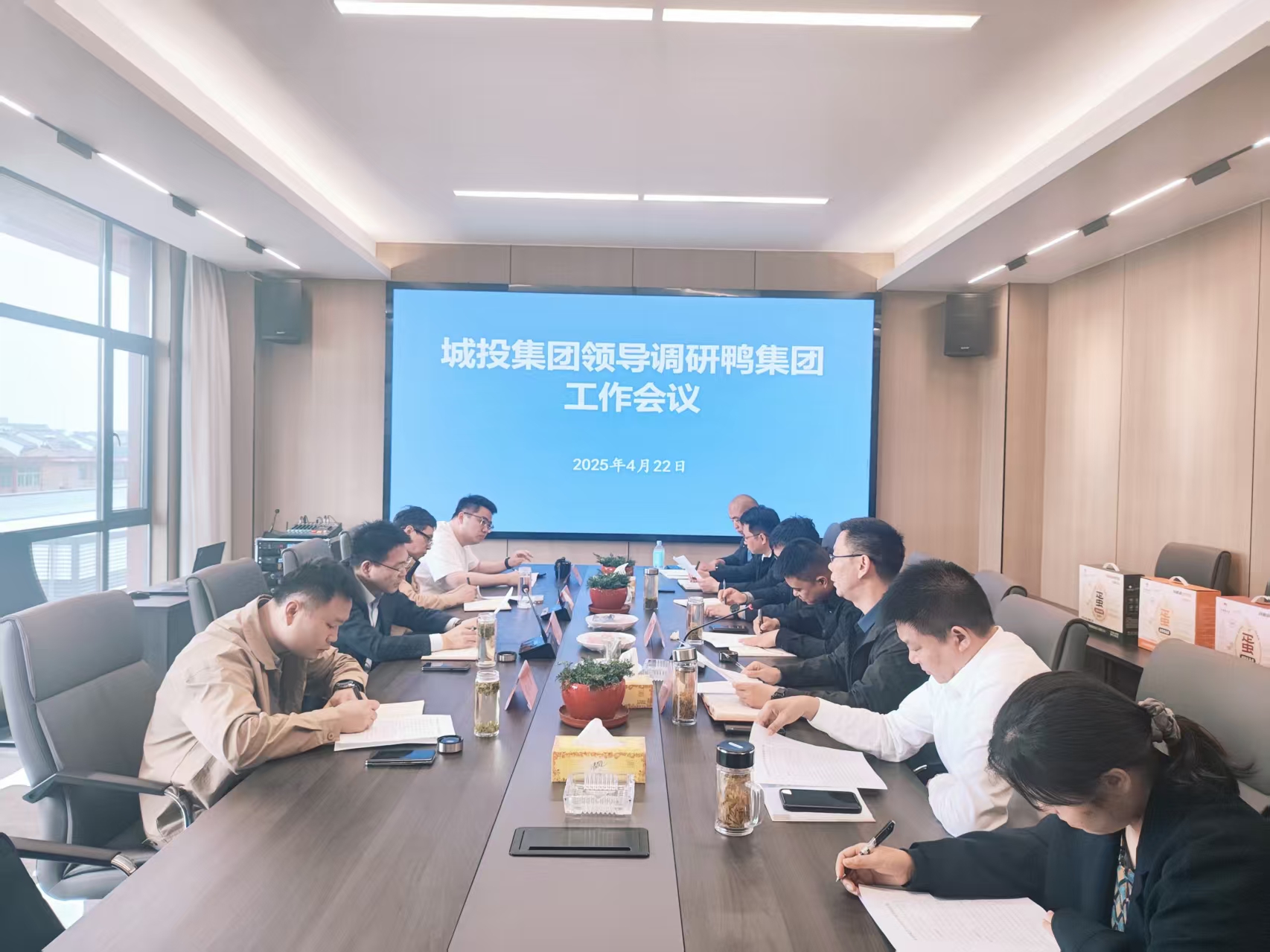 4月22日下午,城投集團董事長邵德軍帶隊調研高郵鴨集團工作,城投集團副總經理、鴨集團董事長黨定龍,城投集團財務總監臧權、黨政辦、產業發展部主要負責人以及鴨集團班子成員、漁業公司及財務計劃部負責人參加會議。
