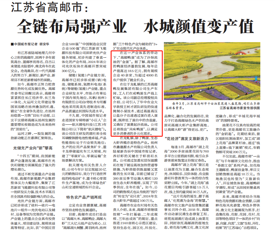 立足農業資源稟賦,高郵市堅持走特色發展道路。
