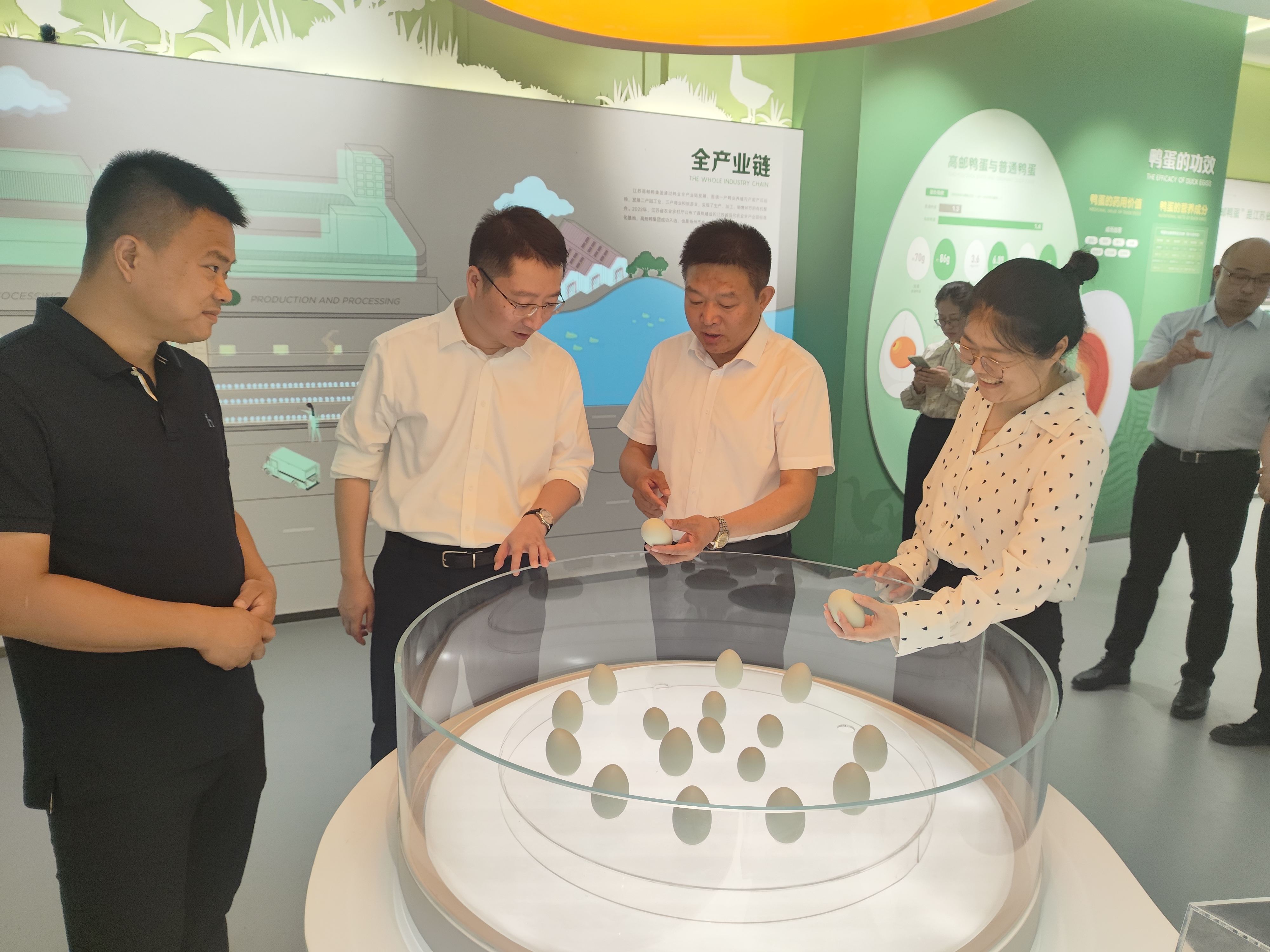 調(diào)研過程中,曾俊一行先后走進(jìn)高郵鴨集團(tuán)文化展廳及蛋品加工車間,詳細(xì)聽取了高郵鴨蛋的前世今生、高郵鴨集團(tuán)發(fā)展歷程、養(yǎng)殖基地概況、食品加工銷售體系等方面的介紹,并就鴨集團(tuán)產(chǎn)品研發(fā)、項(xiàng)目建設(shè)、市場(chǎng)拓展等工作進(jìn)行充分了解。
