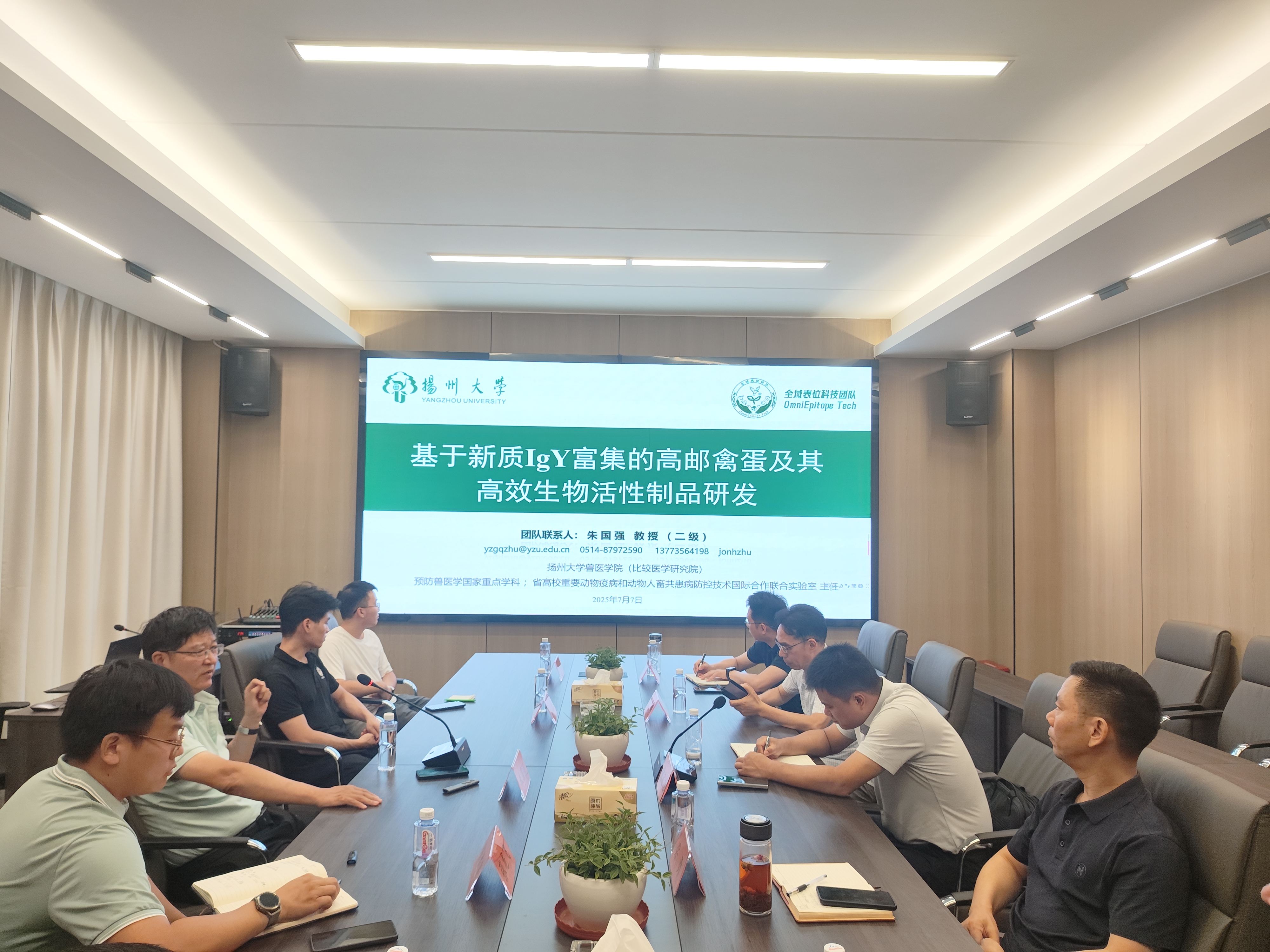 會上,揚州大學科研團隊系統介紹了“基于IgY抗體富集技術的高郵禽蛋功能制品研發”項目情況,提出通過生物技術提取蛋黃免疫球蛋白(IgY),開發具有高附加值的營養保健制品,提升傳統鴨蛋產品的科技內涵。同時,雙方就“高郵鴨蛋與乳制品融合創新”方向進行可行性論證,探討將鴨蛋營養與乳品工藝結合,拓展消費市場。