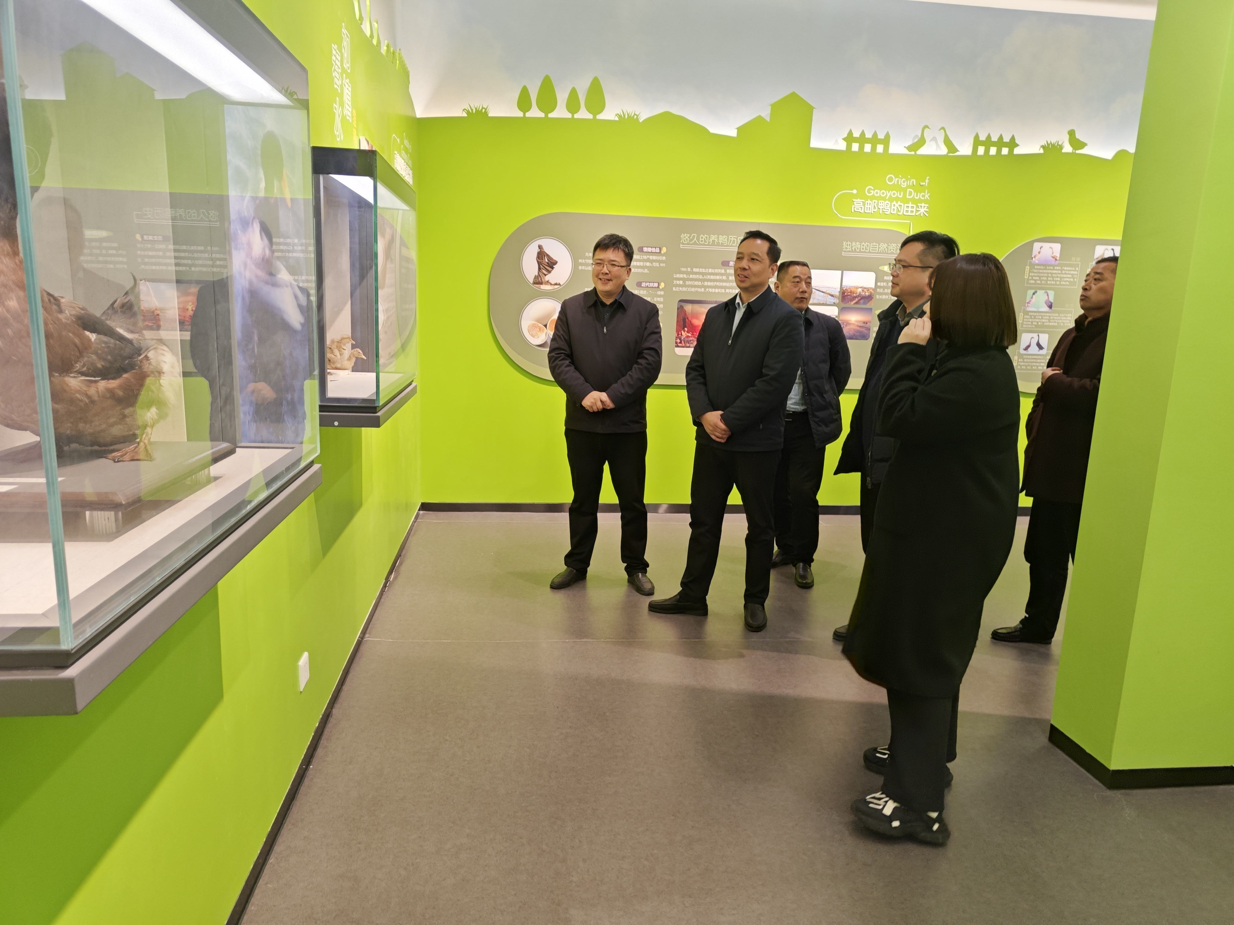 調研組一行先后參觀高郵鴨集團文化展廳、數字化平臺、高郵鴨育繁推示范基地,了解高郵鴨保種養殖、新配套系、項目建設、生產加工等情況,并從高郵鴨蛋的前世今生、高郵鴨集團大事記、好水好鴨出好蛋、食品加工銷售等方面詳細聽取高郵鴨集團全產業鏈打造情況。