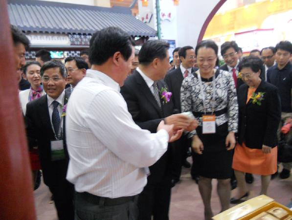 原國務(wù)院副總理回良玉來到中國北京第十屆國際農(nóng)交會(huì)江蘇高郵鴨集團(tuán)展臺(tái)